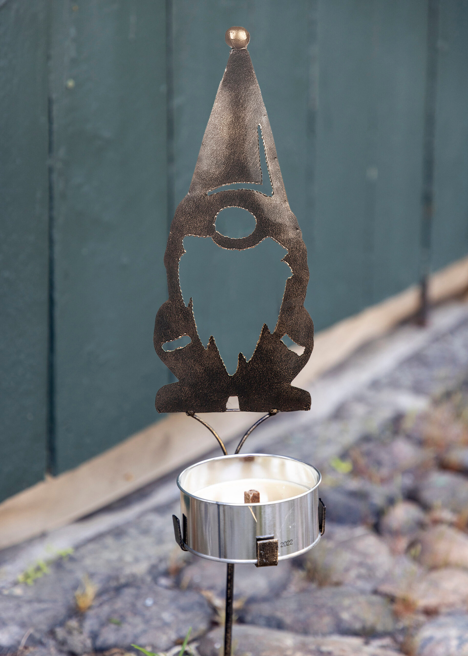 Dekorativ tomte i hamra plåt med plats för marschall, från Different Design. Läs mer