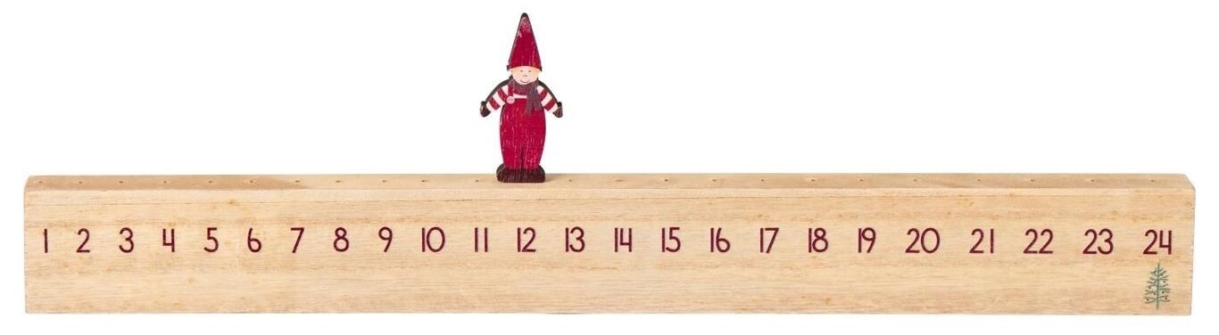 En charmig adventskalender i trä med små siffror från 1 till 24. Flytta den lilla tomtefiguren dag för dag och gör nedräkningen till julafton både rolig och stämningsfull. En tidlös dekoration som sprider julkänsla år efter år och blir en mysig tradition för hela familjen.