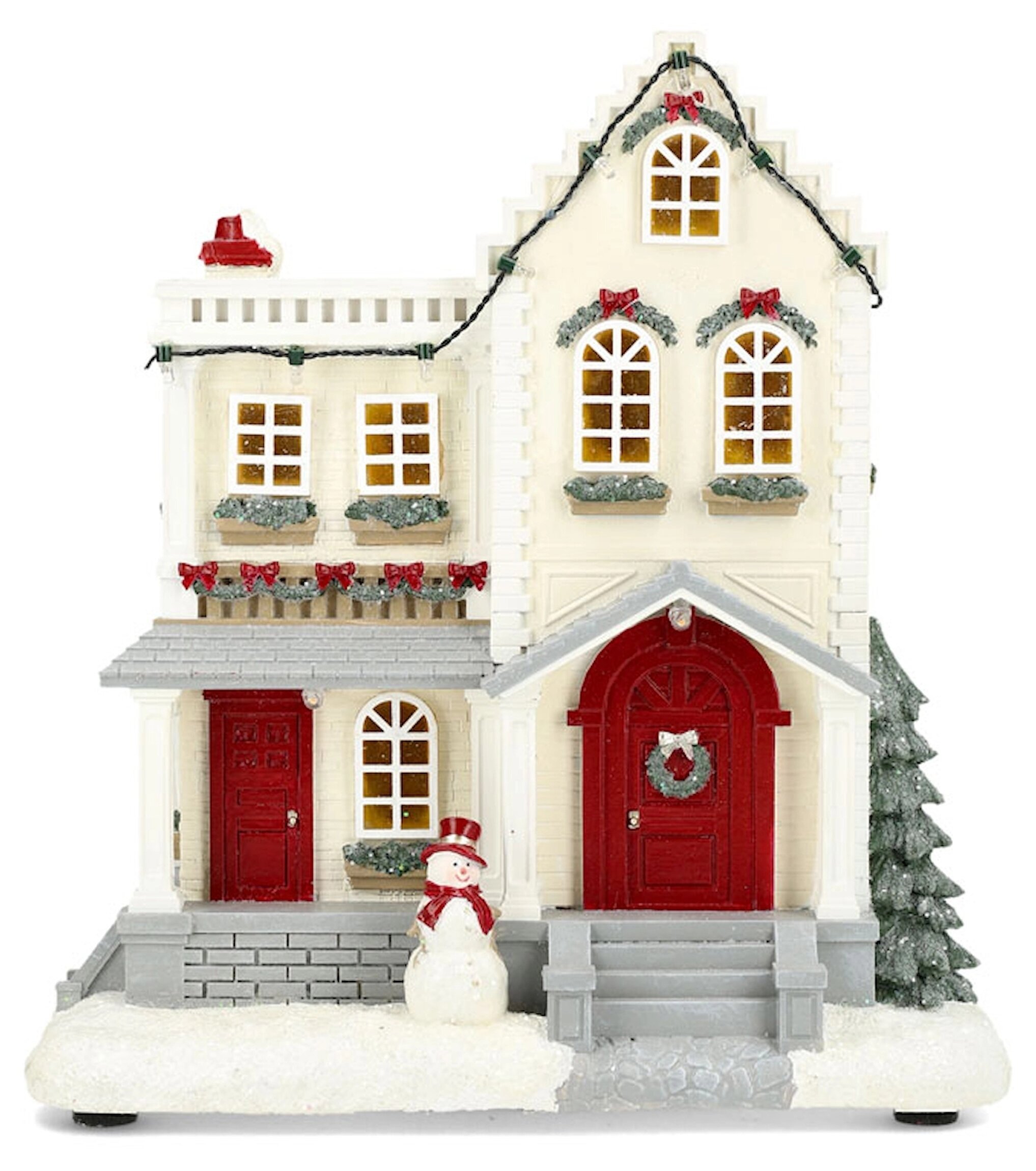 Skapa julstämning hemma med detta charmiga vinterhus. Med sina röda dörrar, snögubbe och vackra detaljer sprider det en härlig och traditionell känsla. LED-belysningen ger ett varmt sken som lyser upp i vintermörkret.