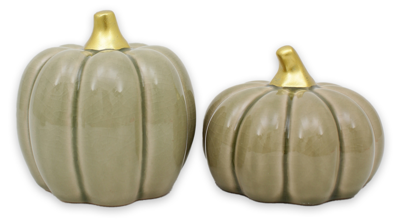 Charmiga dekorationspumpor i keramik blir en perfekt detalj till ditt hem. Med sin eleganta, blanka yta och gyllene topp ger de en känsla av lyx, samtidigt som deras olika former och vackra färger gör varje pumpa unik.