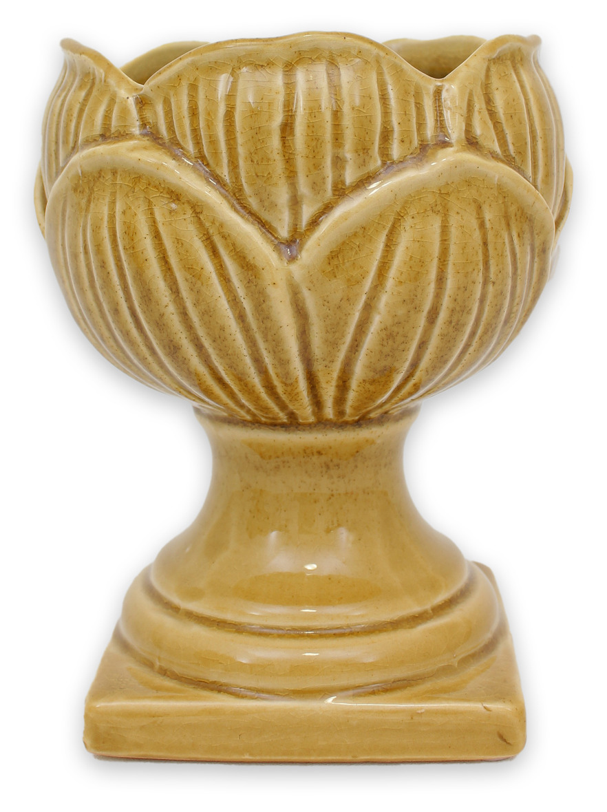 En vacker pokalkruka som kombinerar klassisk form med stilfulla detaljer. Den blombladsliknande strukturen gör den till en dekorativ inredningsdetalj i hemmet – perfekt för gröna växter, färgglada blommor eller som kreativ dekoration året runt.