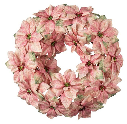 En vacker konstgjord krans fylld med rosa julstjärnor som sprider julstämning. Perfekt att hänga på dörren, väggen eller som mittpunkt i en bordsdekoration. De naturtrogna blommorna håller sig lika fina år efter år – utan att vissna eller tappa färg. En tidlös julfavorit som skapar en varm och välkomnande känsla i hemmet.