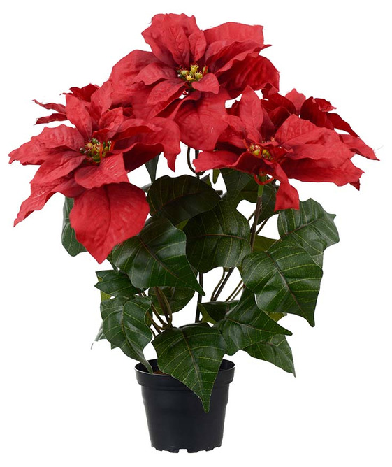 En vacker konstgjord julstjärna i röda toner som sprider en varm och elegant julkänsla. Den naturtrogna designen gör att blomman ser levande ut, men håller sig lika fin år efter år – helt utan skötsel. Perfekt på fönsterbrädan, bordet eller i hallen för en stämningsfull och stilren juldekoration.