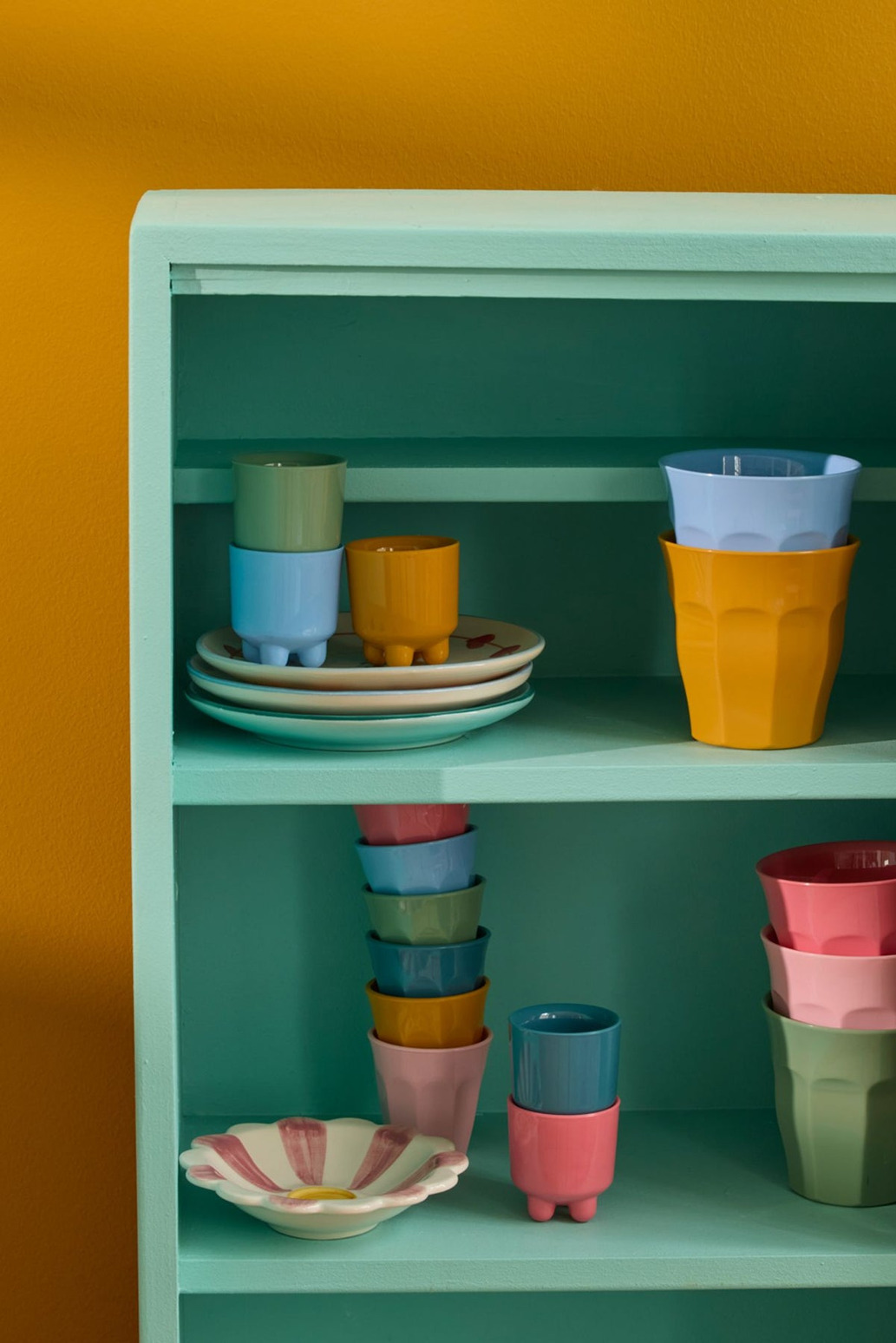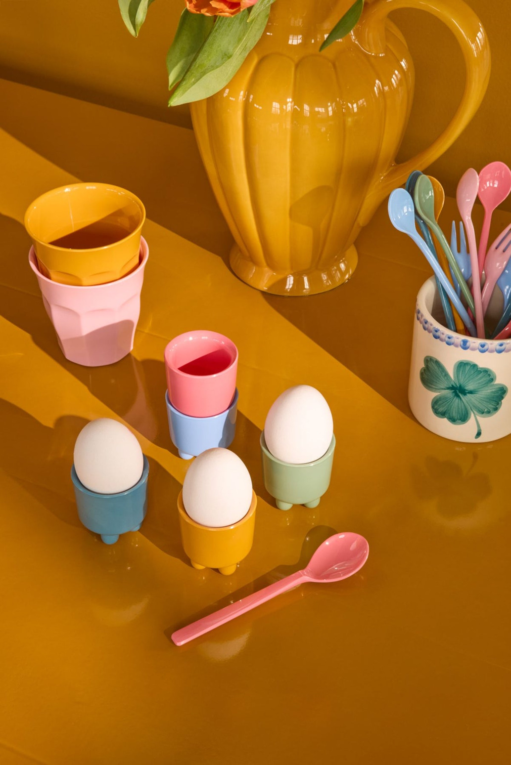 Starta dagen med färg och glädje. Det här setet med sex äggkoppar från Rice kommer i lekfulla pastell- och starka färger som piggar upp frukostbordet. De är tillverkade i slitstark melamin, fria från BPA och ftalater, och kan användas om och om igen. Perfekta för både vardagsfrukost och helgens mysiga brunch.