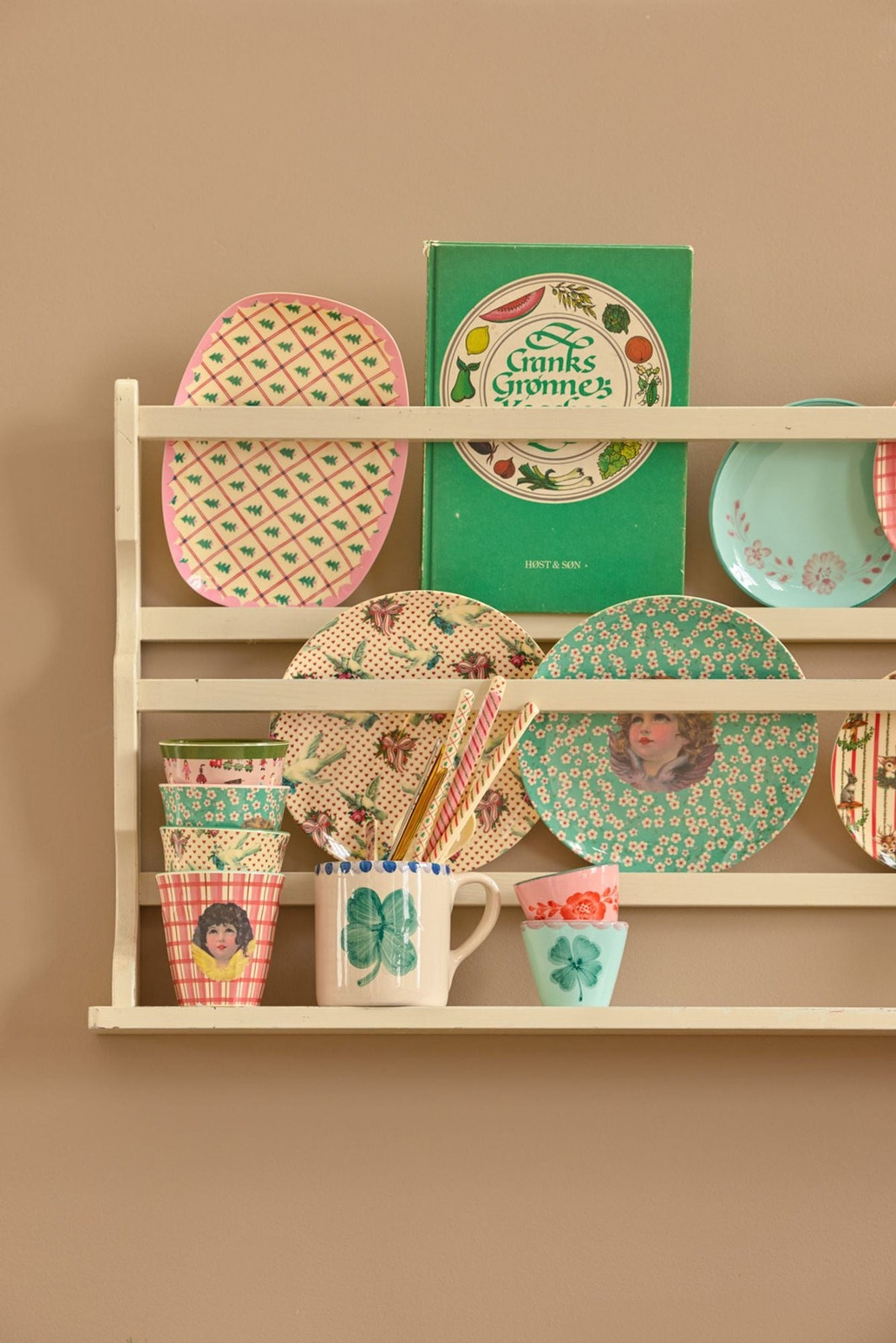 Liten tallrik i melamin som kan användas både som tallrik, uppläggningsfat eller som en liten bricka. Dessa tallrikar återkommer ofta i Rice kollektion med nya mönster och färger.