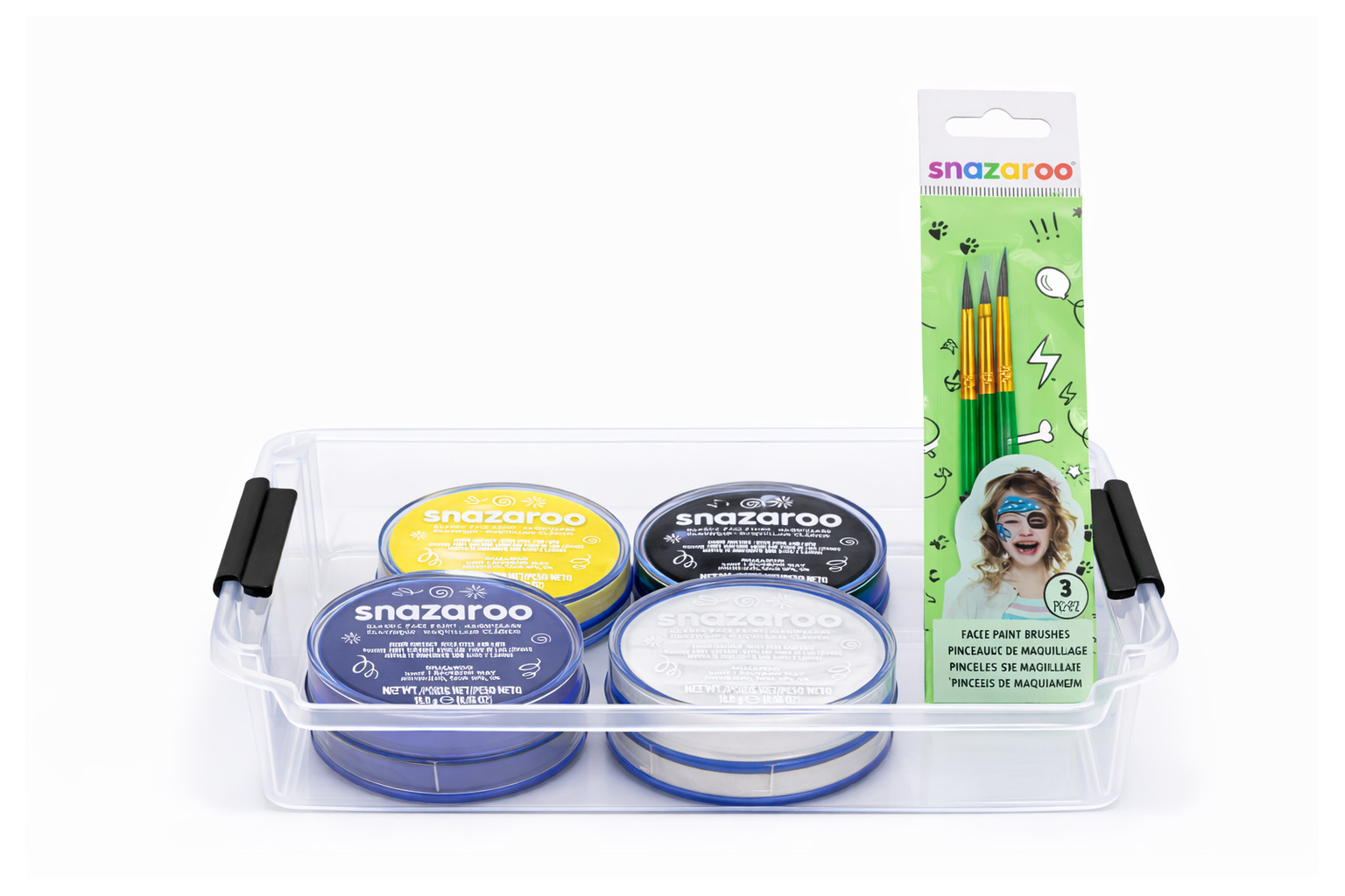 Snazaroo har ett sortiment av högkvalitativa, vattenbaserade ansiktsfärger och effekter för ansiktsmålning. Färgerna står för kvalitet, dryghet samt säkerhet och är helt giftfria. Färgen appliceras enkelt och tvättas lika lätt bort med tvål och vatten.