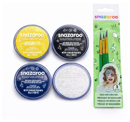 Snazaroo är ett sortiment av högkvalitativa, vattenbaserade ansiktsfärger och effekter. Färgerna står för kvalitet, dryghet samt säkerhet och är helt giftfria. Färgen appliceras enkelt och tvättas lika lätt bort med tvål och vatten.